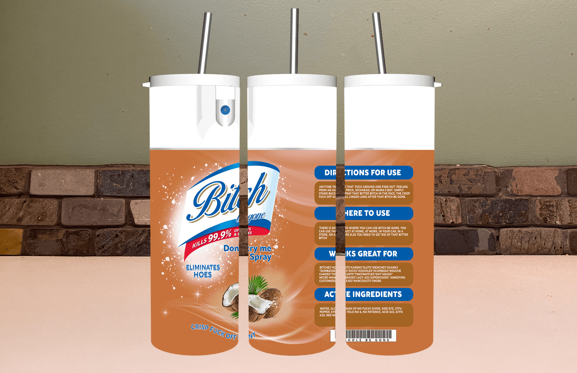 Seamless full-wrap sublimation design: “Bitch Be Gone Parody Spray”