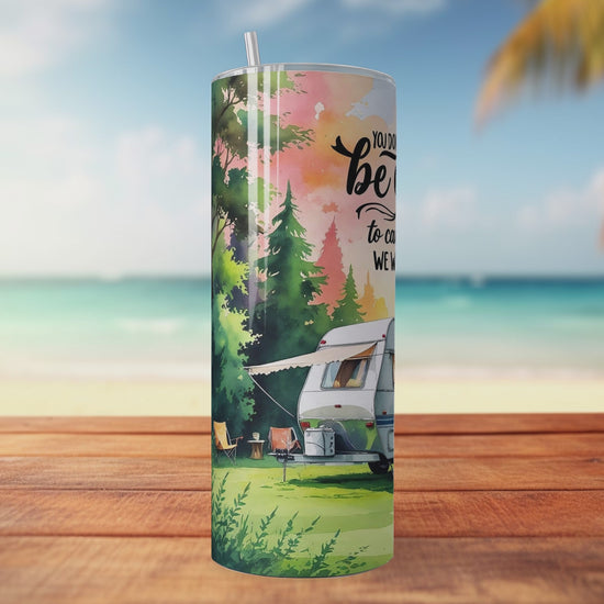 Full-wrap sublimation design: You Don't Need to Be Crazy to Camp With Us, We Will Train you tumbler